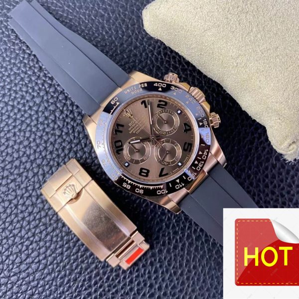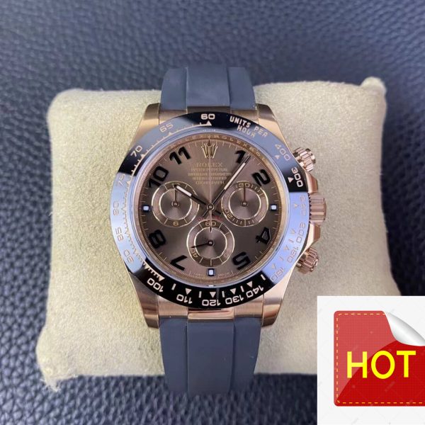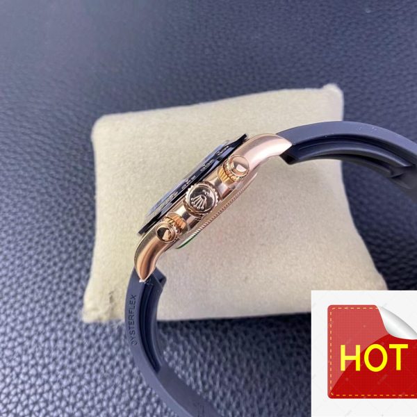 Case material rose gold, black Cerachrom ceramic solid outer ring with meter speed scale