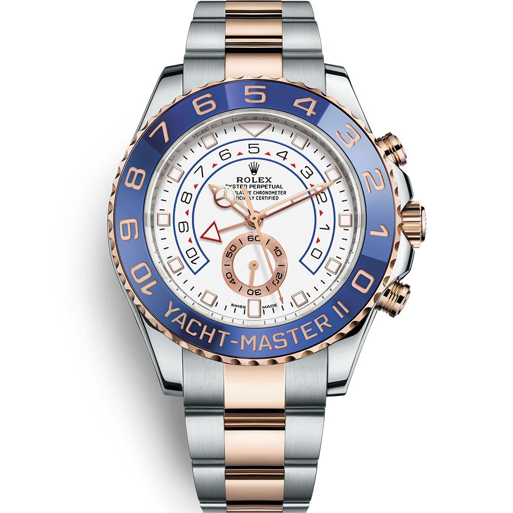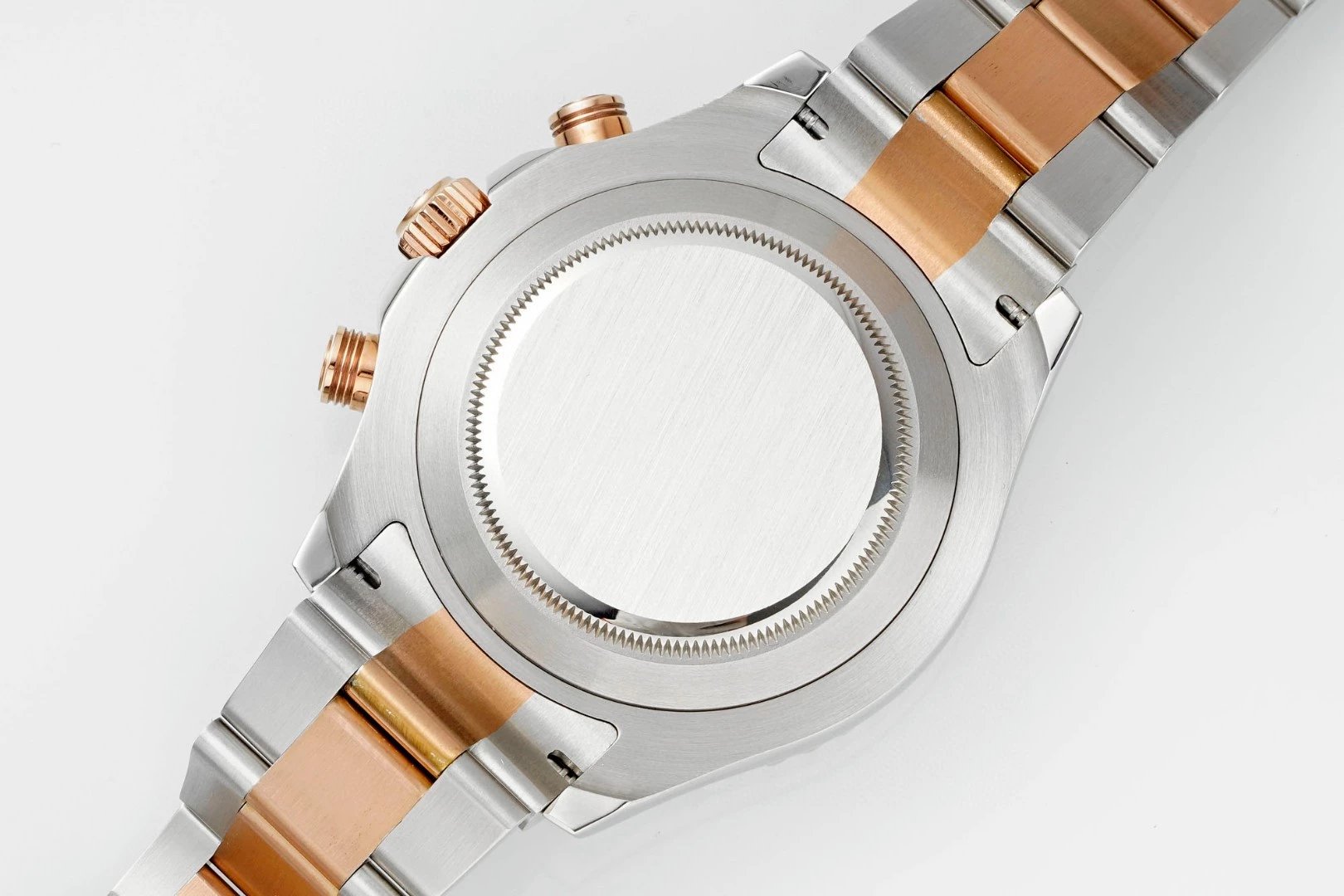 The strap is made of Eternal rose gold (a combination of Oyster steel and Eternal Rose gold) with three grid links
