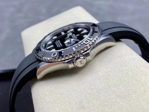 Bezel material bidirectional rotation 60 minutes scale outer ring with matte black Cerachrom ceramic lettering, polished three-dimensional numbers and scale