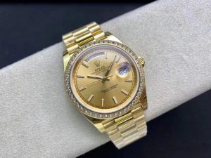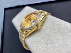 The crown is made of gold and has a double-lock lock with double waterproof system